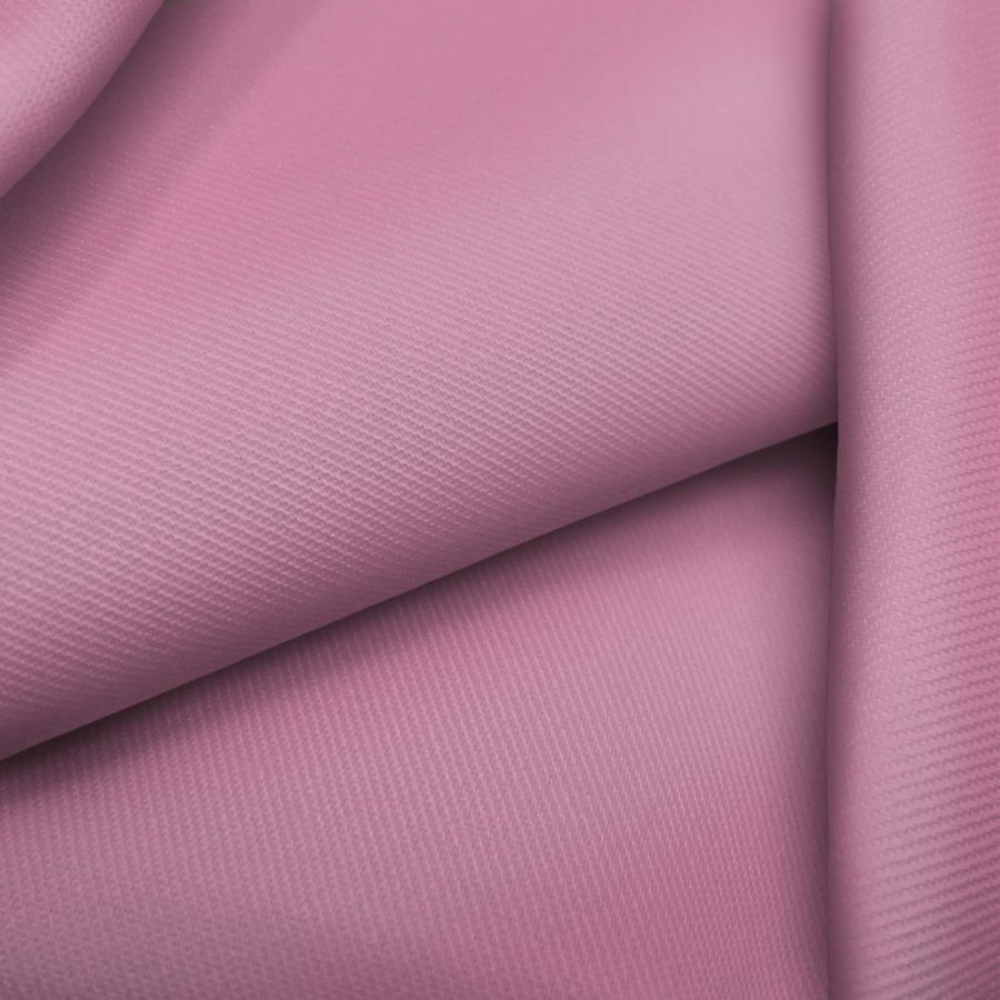 La tela base es Sarga - Prada, una sarga compuesta por 96% poliéster y 4% elastano, con un gramaje de 220 gr/m2 y un ancho de 150 cm. El color liso impreso es Rosa Claro Thulian, un tono suave y delicado con un CMYK de 16-57-16-0. Este color secundario es una mezcla de rojo y rosa con un toque de azul. Combinado a la perfección con tonos cálidos como el beige, el dorado o el naranja.