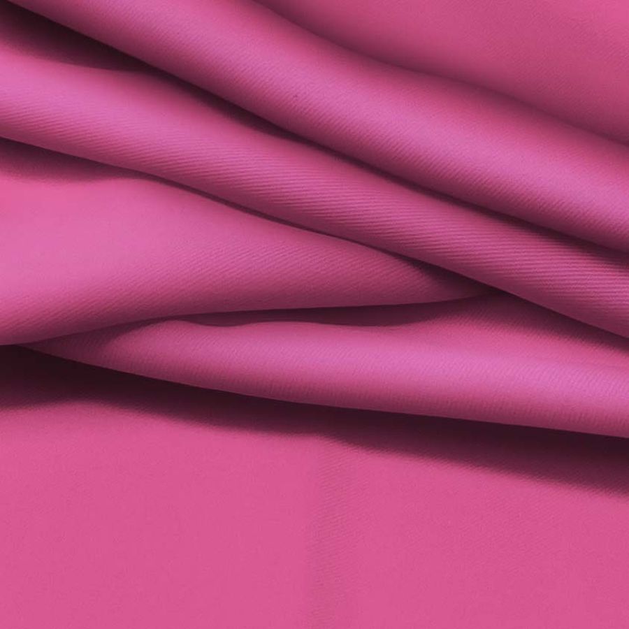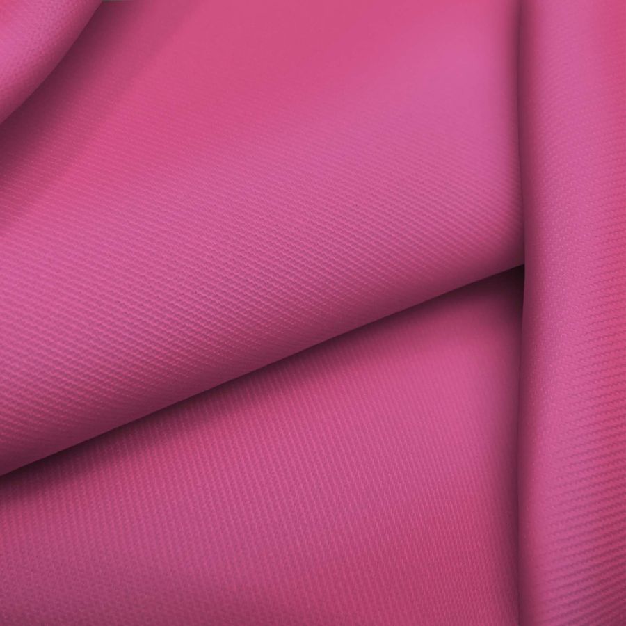 La tela base de este tejido es una sarga de composición 96% poliéster y 4% elastano de 220 gr/m2 con un ancho de 150 cm. El color liso impreso es rosa fandango con una combinación CMYK de 8 80 19 0. Este color secundario, generado a partir de la mezcla de magenta y amarillo, aporta una mezcla vibrante y enérgica que transmite un alto grado de pasión y vitalidad. Además, este color se puede combinar especialmente bien con rojos y naranjas cálidos para crear una estética elegante y dinámica.