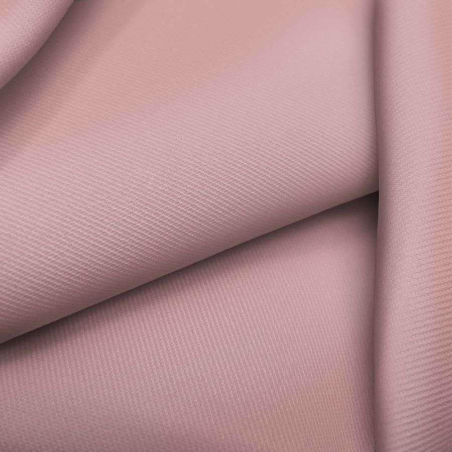 La tela base es una sarga prada compuesta por un 96% de poliéster y un 4% de elastano, con un gramaje de 220 gr/m2 y un ancho de 150 cm. El color liso impreso es un delicado rosa pastel con un contenido de tinta cyan del 12%, magenta del 42%, yellow del 28% y black del 1% (12 42 28 1 de CMYK).