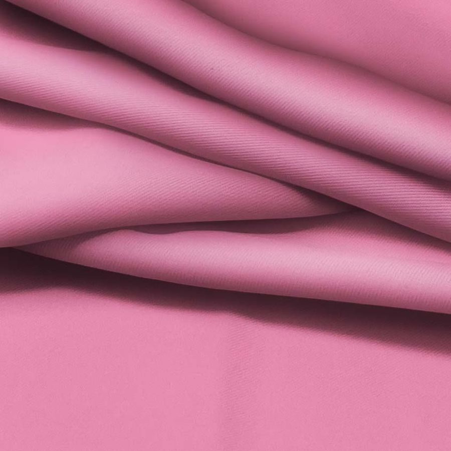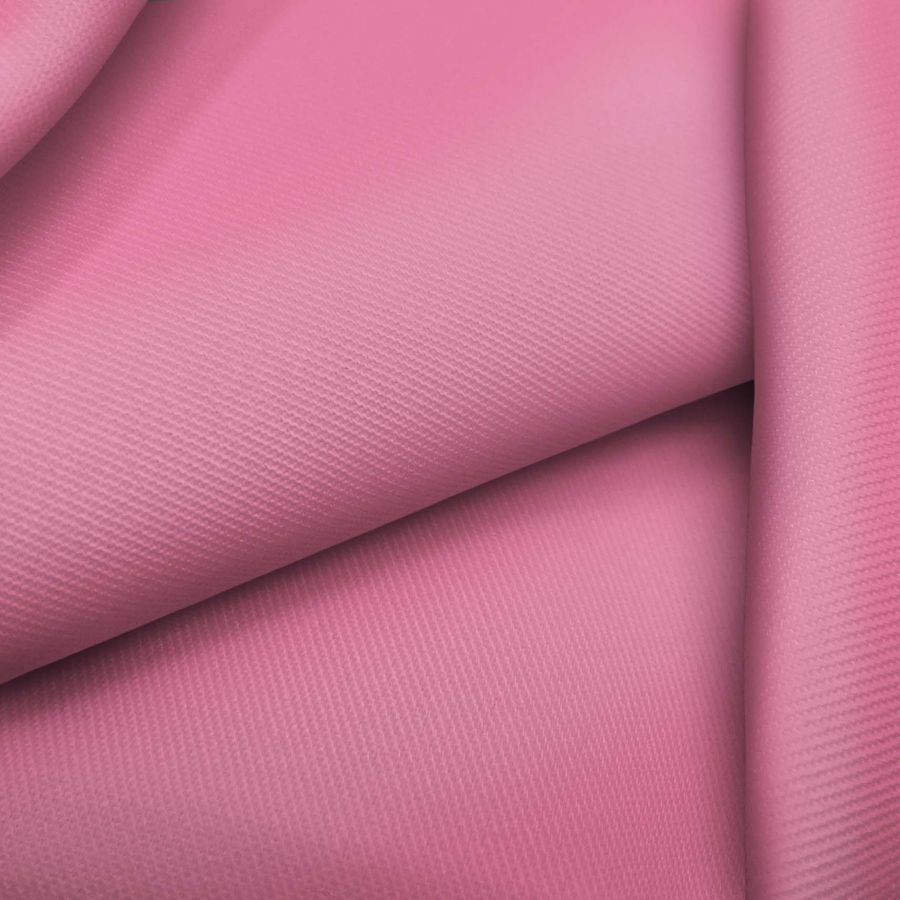 La tela base de esta prenda es Sarga - Prada, compuesta por 96% Poliéster y 4% Elastano, y tiene un peso de 220 gr/m2. El color liso impreso es un rosa llamado Tickle Me, con un CMYK de 0 63 11 0, lo que le da un tono vibrante y expresivo. Combinado ampliamente con colores neutros como el blanco y el negro, también es atractivo con tonos fríos como el azul o el verde oscuro. La tela está impresa a una sola cara por impresión digital textil.