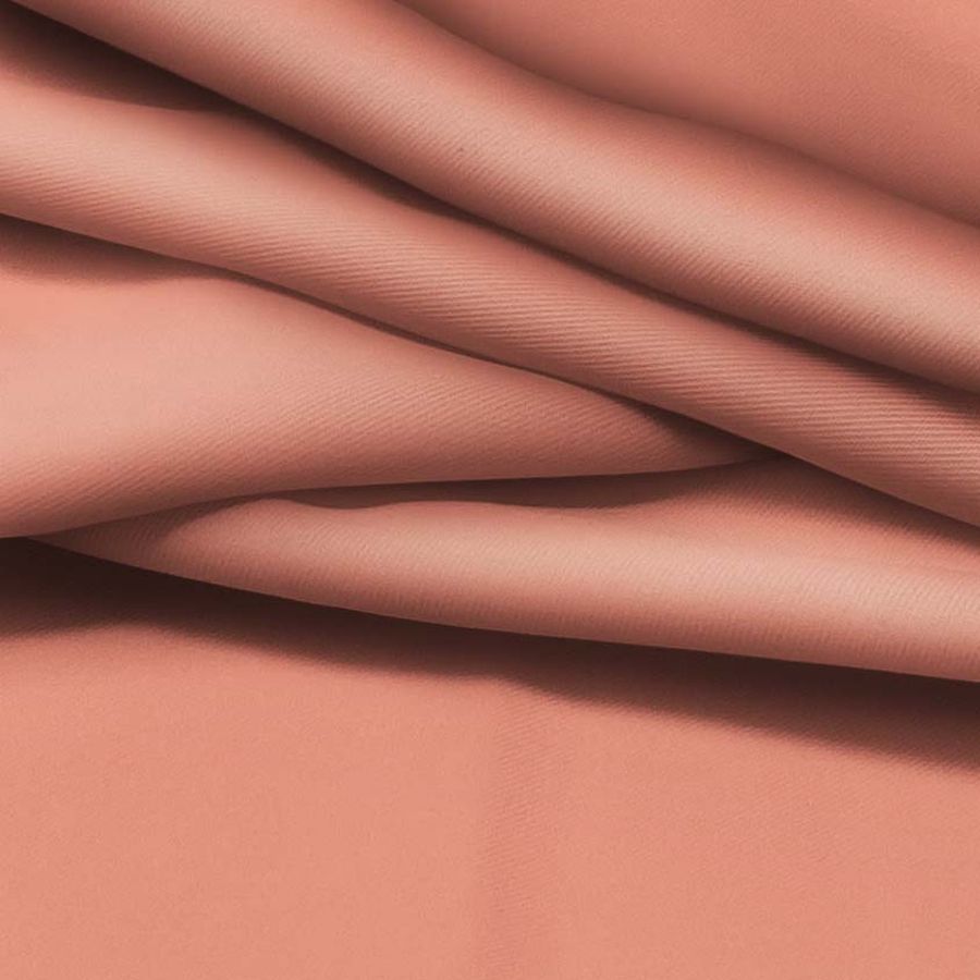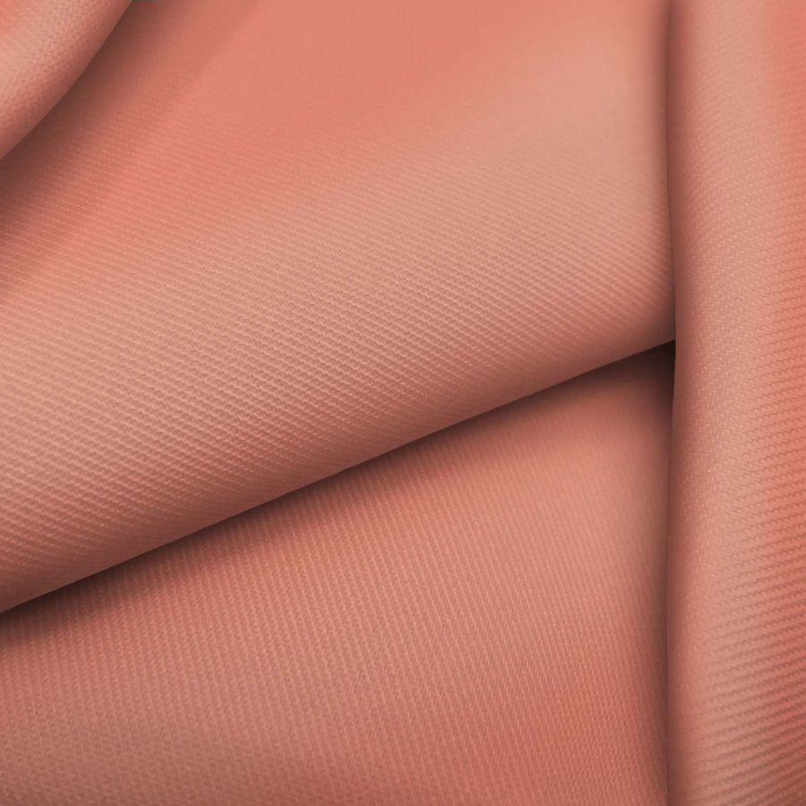 La tela base es una sarga Prada compuesta por un 96% de poliéster y un 4% de elastano, con un gramaje de 220 gr/m2 y un ancho de 150 cm. El color liso impreso es un rosa salmón con una tinta magenta del 58%, una tinta yellow del 50% y un CMYK de 0 58 50 0. El color transmitido es de una tonalidad cálida y vibrante que simboliza la sensación de bienestar y luminosidad. Combina de manera excepcional con colores como el blanco, el negro, el gris y azules suaves.