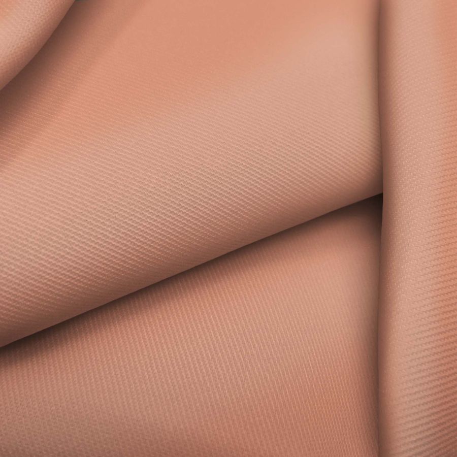 El color liso impreso, en tonos rosa y salmón oscuro, tiene una composición de tinta CMYK de 6 50 51 0. Este color secundario combina perfectamente con otros tonos pastel y neutros, como el blanco, gris y crema, dando lugar a combinaciones delicadas y elegantes. El tejido está impreso con el color liso a una sola cara por impresión digital textil, lo que le aporta un acabado de alta calidad.