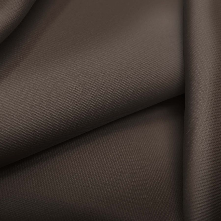 La tela base es una Sarga-Prada compuesta por un 96% de poliéster y un 4% de elastano, con un gramaje de 220 gr/m2 y un ancho de 150 cm. El color liso impreso es un marrón castaño oscuro, con un CMYK de 56 60 65 70. Este color simboliza la tierra, la estabilidad y la seguridad, y técnicamente se puede mezclar con tonos ocres, grises y verdes, creando una paleta muy natural y elegante. La tela está impresa con el color liso a una sola cara por impresión digital textil, lo que significa que el diseño se aplica directamente en la superficie del tejido, sin necesidad de tintes o pigmentos.