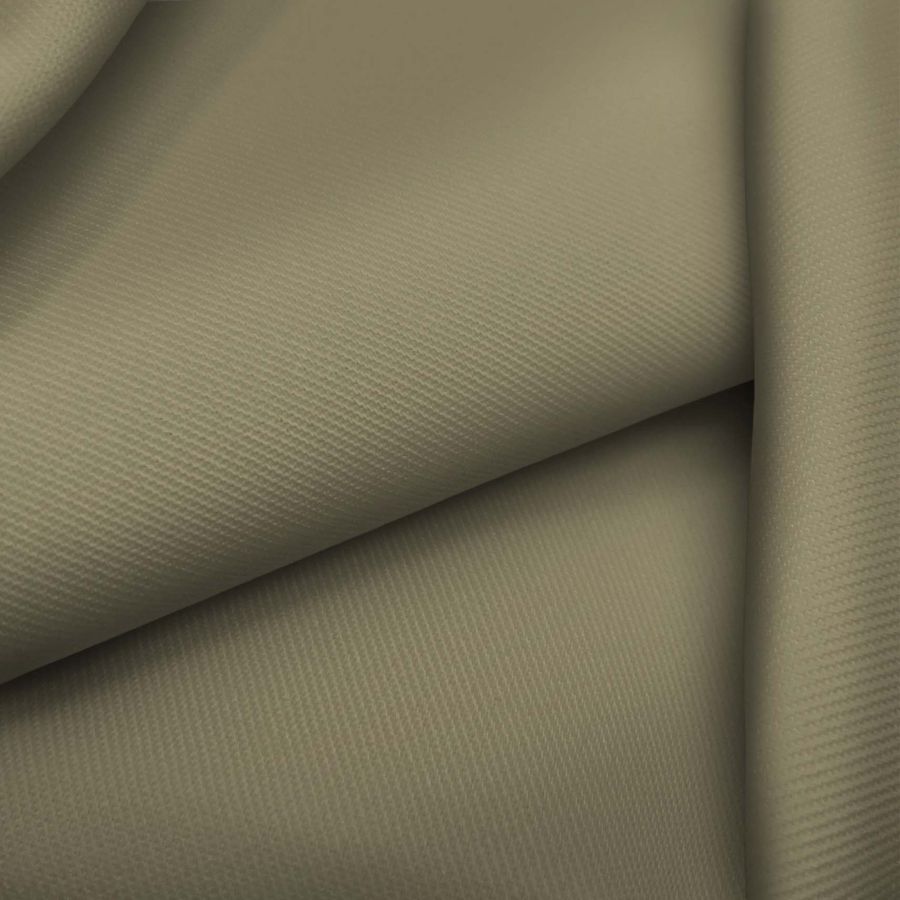 La tela base de este tejido es la Sarga de Prada, compuesta por un 96% de poliéster y un 4% de elastano, con un gramaje de 220 gr/m2 y un ancho de 150 cm. El color liso impreso presenta un tono marrón- ejército, con un CMYK de 46 38 58 25. El color secundario, un tono de verde oscuro, simboliza la fuerza y la firmeza, mejorando la capacidad de concentración. Combina de forma ideal con colores cálidos como el beige, el dorado y los tonos tierra. Es importante destacar que el tejido está impreso con el color liso a una sola cara por impresión digital textil, no es un tejido tintado sino impreso por una sola cara.