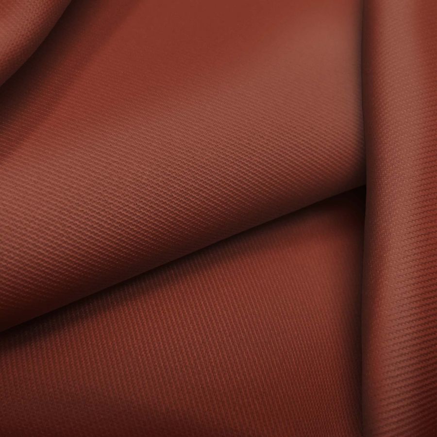 La tela base de este tejido es la Sarga - Prada, una tela de sarga con una composición de 96% poliéster y 4% elastano. El color liso impreso en esta tela es Marron, Noche de Sangre, con un CMYK de 34, 87, 90, 50. Este color rico y profundo es una mezcla de marrón oscuro con tonos rojos y granates. Se combina bien con colores neutros como negro, blanco y gris, así como con tonos tierra y dorados.