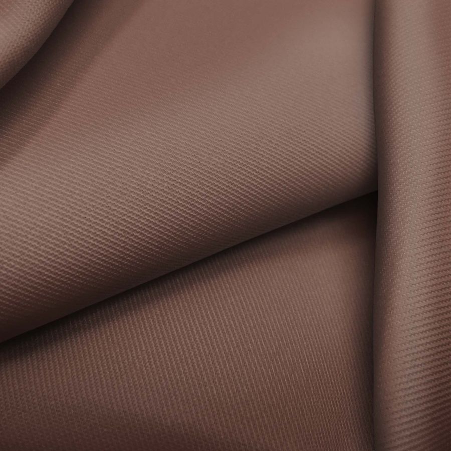 La tela base de este tejido es de tipo sarga y está compuesta por el 96% de poliéster y el 4% de elastano, lo que la hace muy resistente y duradera. Además, tiene un gramaje de 220 gr/m2 y es de una anchura de 150 cm. El color liso impreso en este tejido es de un marrón oso café, el cual está compuesto por una combinación de cian, magenta, amarillo y negro en el CMYK 40, 57, 58 y 49 respectivamente. Este color tiene un tono oscuro que representa la fuerza y la estabilidad, y combina muy bien con tonos beige, marrones claros y verdes oscuros.