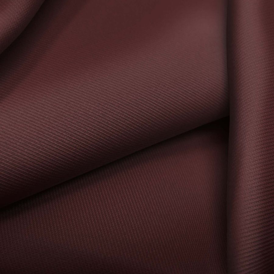 La tela base de este tejido es una sarga de poliéster y elastano con un gramaje de 220 gr/m2 y un ancho de 150 cm. El color liso impreso es marrón siena oscura, con un CMYK de 48 88 69 77. Este color es elegante y sofisticado, tiene una cierta profundidad y puede combinarse con otros tonos oscuros como el negro o el gris para crear un efecto más dramático.