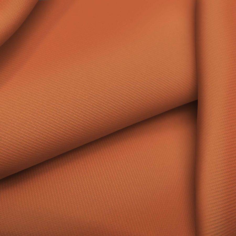 La tela base, Sarga Prada, está compuesta por un 96% de poliéster y un 4% de elastano, con un gramaje de 220 gr/m2 y un ancho de 150 cm. El color liso impreso es Marron Siena Tostada, con un CMYK de 15 70 80 4, lo que transmite una sensación de calidez, fuerza y estabilidad. Este tono terroso combina perfectamente con colores clave como el amarillo mostaza o el verde oliva, creando una gama cromática armónica y natural. La tela está impresa con el color liso a una sola cara mediante impresión digital textil, lo que le confiere una alta definición y un acabado brillante.