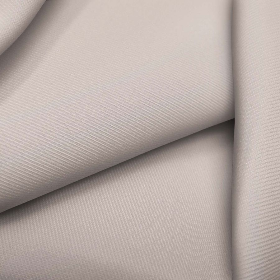 La tela base es una sarga de poliéster y elastano de 220 gr/m2 con un ancho de 150 cm. El color liso impreso es un marrón taupe pálido con un CMYK de 12 19 20 0. Este color tiene una simbología de elegancia y sofisticación, representando el equilibrio perfecto entre lo clásico y lo moderno. Combina bien con tonos tierra, tonos crema y tonos grises. Es importante destacar que el tejido está impreso con el color liso a una sola cara por impresión digital textil, logrando una alta durabilidad y calidad de impresión.