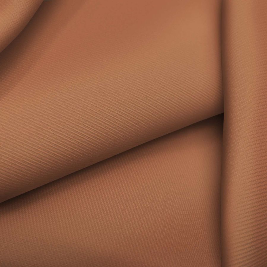 La tela base es una Sarga - Prada, compuesta por 96% POLIÉSTER y 4% ELASTANO, con un gramaje de 220 gr/m2 y una anchura de 150 cm. El color liso impreso es Marrón-Terracota Oscuro, con una combinación de tintas Cyan (25), Magenta (61), Yellow (69) y Black (17) con un CMYK de 25 61 69 17. Este color transmite una sensación de fuerza y estabilidad, es un color terroso que se relaciona con la tierra, la naturaleza y la simplicidad. Combina bien con colores claros y neutros como el beige, el gris y el blanco, así como con tonalidades naranja y rojizas.