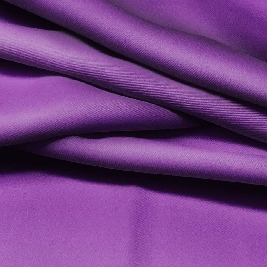 La tela base es una sarga Prada compuesta por un 96% de poliéster y un 4% de elastano, con un gramaje de 220gr/m2 y una anchura de 150 cm. Su color liso es de un tono morado eminencia, con los siguientes valores en CMYK: 71 93 7 1. Este color es un tono oscuro y profundo, que se combina bien con otros colores como el amarillo mostaza, el dorado y el verde oliva.