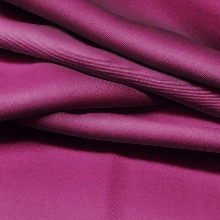 La tela base es una Sarga - Prada, compuesta de un 96% de poliéster y un 4% de elastano, con un gramaje de 220 gr/m2 y un ancho de 150 cm. El color liso impreso es Morado Pensamiento Púrpura, reflejando un CMYK de 41 98 32 37. Este color se caracteriza por ser intenso y vibrante, aportando un toque de elegancia y sofisticación en cualquier prenda confeccionada con esta tela. Combinado con tonos neutros como blanco, negro, beige o gris, aportará un contraste armonioso y equilibrado.