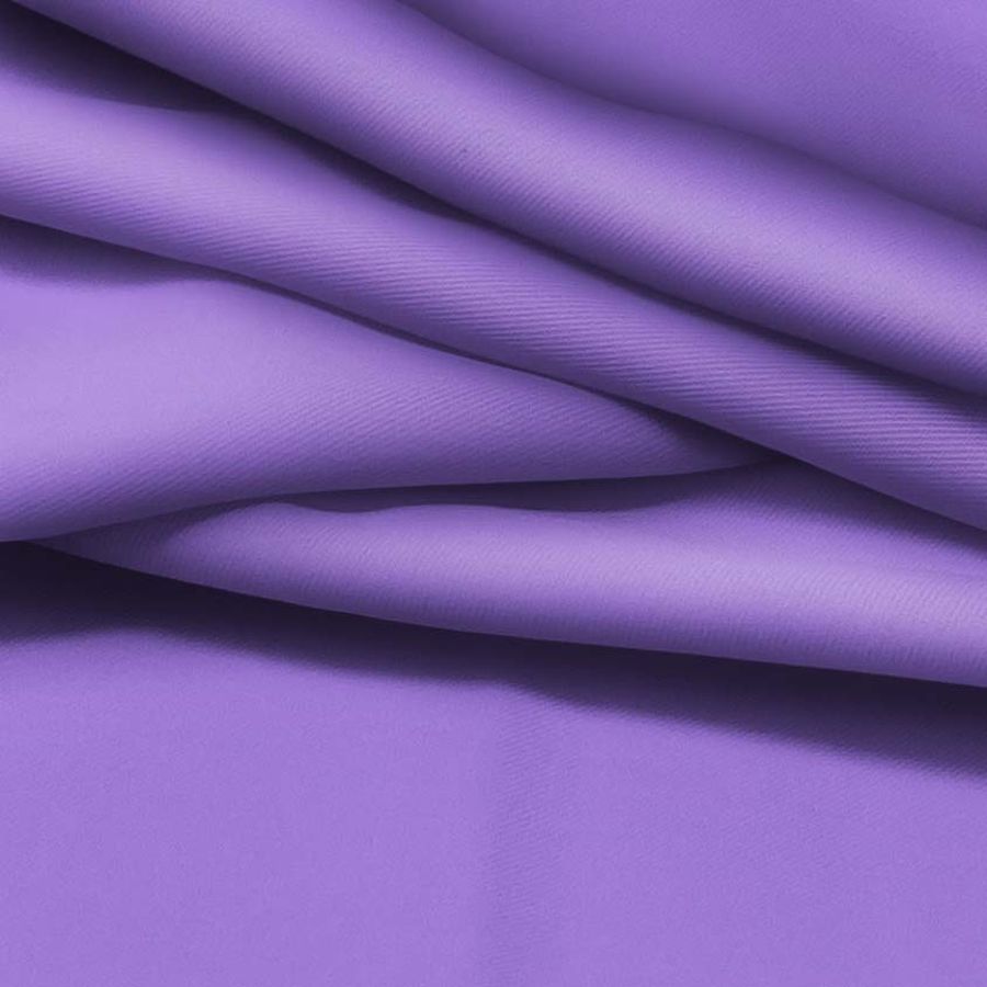 La tela base es la Sarga - Prada, compuesta por un 96% de poliéster y un 4% de elastano, con un gramaje de 220 gr/m2 y un ancho de 150 cm. El color liso impreso es de un Morado Púrpura Medio, con un CMYK de 58 60 0 0. Este color secundario representa la espiritualidad, la tranquilidad y el equilibrio emocional, resultando muy versátil para prendas tanto femeninas como masculinas. Combina especialmente bien con el blanco, negro, azul claro y verde pistacho. La tela se imprime con el color liso a una sola cara mediante impresión digital textil.