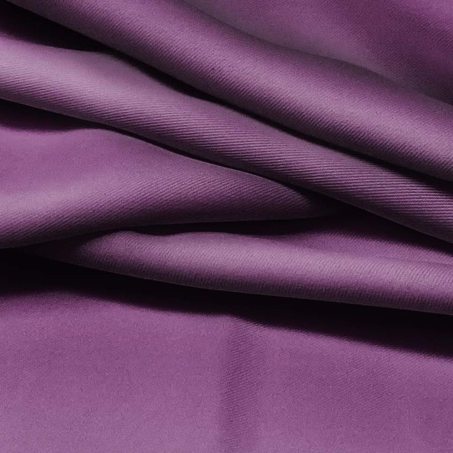 La tela base es la sarga Prada, compuesta por un 96% de poliéster y un 4% de elastano, con 220 gr/m2 de gramaje y un ancho de 150 cm. El color liso impreso es de tonalidades morado y violeta japonés, con un CMYK de 66 84 35 32. Este color secundario es símbolo de sabiduría, creatividad y espiritualidad. Se combina bien con tonos amarillo limón, verde menta y rosa pastel. La tela está impresa con el color liso a una sola cara por impresión digital textil.