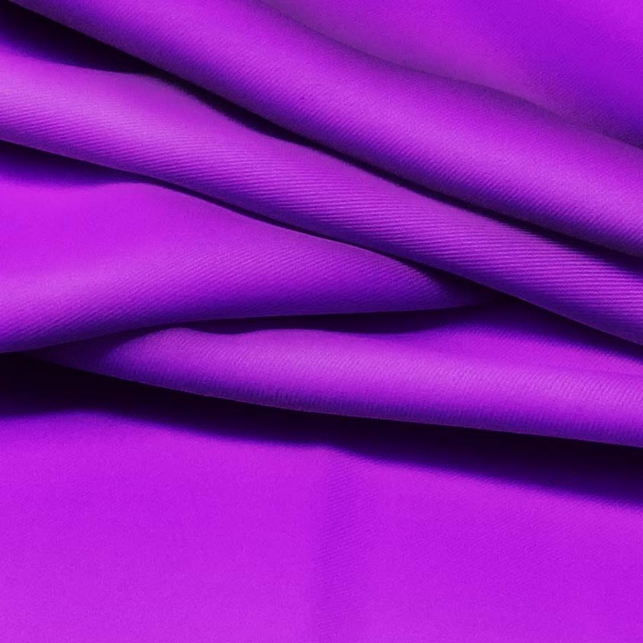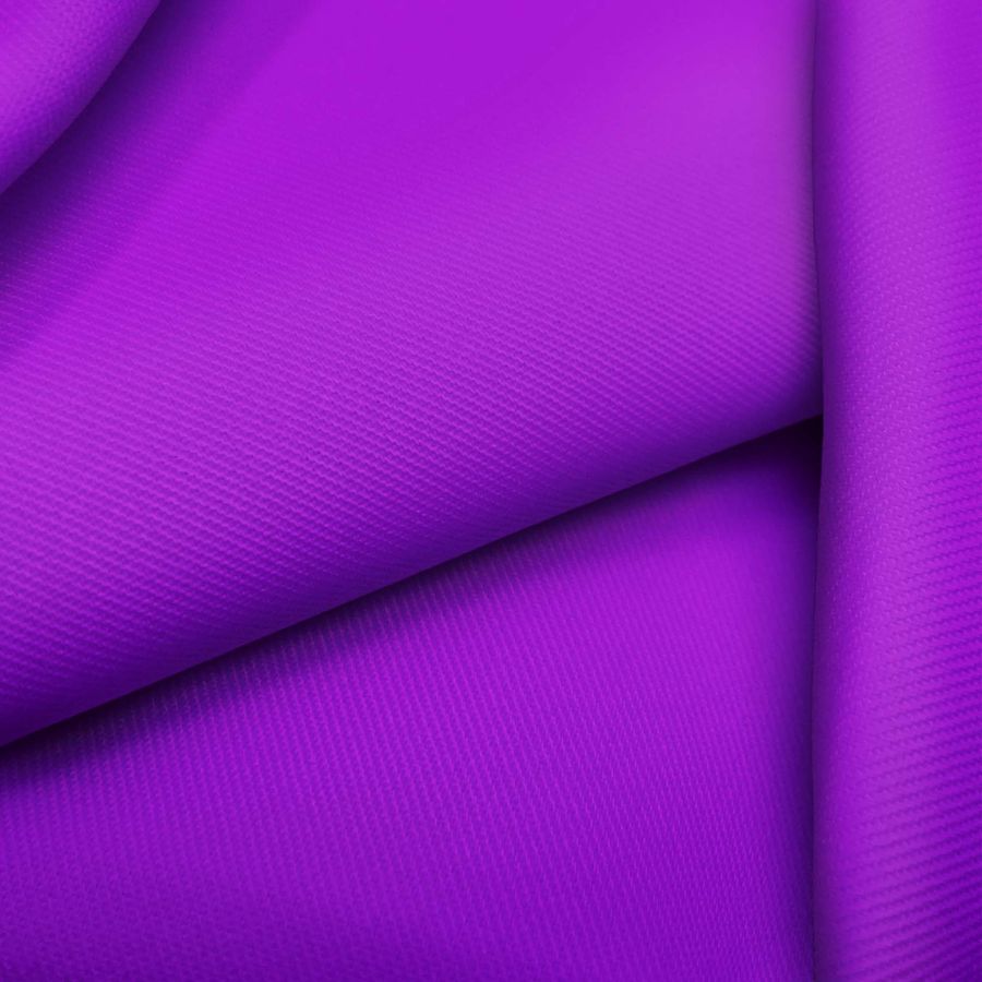 La tela base de nuestro tejido es la sarga Prada, compuesta principalmente por 96% de poliéster y 4% de elastano, con un gramaje de 220 gr/m2 y un ancho de 150cm. El color liso impreso es un vibrante tono morado-violeta oscuro, con un CMYK de 70 85 0 0. Este color secundario simboliza la creatividad, la luz y la fantasía, y gracias a su alta saturación y luminosidad, contrasta perfectamente con tonos neutros como el blanco o el negro, o con tonalidades similares como el rosa o el azul.