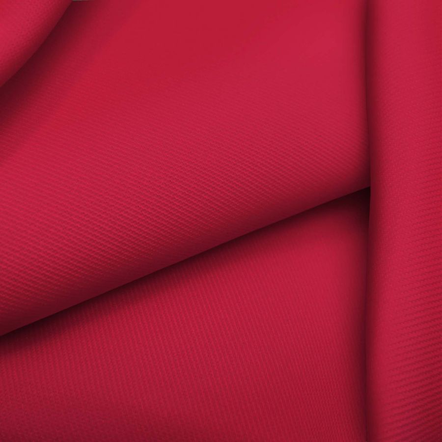 La tela base es una sarga de composición 96% poliéster y 4% elastano de gramaje 220 gr/m2 y ancho de 150 cm, de nombre Sarga - Prada. El color liso impreso es de tonalidad rojo-burdeos, con un contenido CMYK de 16, 98, 71, 6. Este color, por su tonalidad, simboliza la pasión y la elegancia, combinando a la perfección con colores neutros como el blanco y el negro, y con tonalidades de la misma gama cromática.