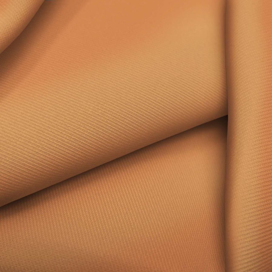 La tela base es una Sarga - Prada de composición 96% poliéster y 4% elastano, con un gramaje de 220 gr/m2 y un ancho de 150 cm. El color liso impreso en la tela tiene un tono Naranja Teja, el cual se obtiene a través de la utilización de las tintas de cian, magenta, amarillo y negro en el proceso de impresión digital textil con un percentil de CMYK de 7, 54, 70, 1.