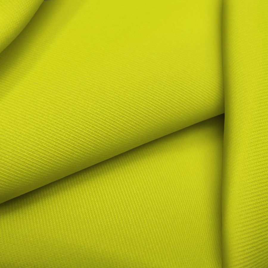 La tela base es Sarga - Prada, compuesta principalmente por poliéster y elastano, con un gramaje de 220 gr/m2 y un ancho de 150 cm. El color liso impreso es un vibrante amarillo absenta con un CMYK de 22 0 89 0. Este color se combina especialmente bien con tonalidades de azul y verdes, creando un contraste llamativo y moderno. La tela está impresa con el color liso a una sola cara por impresión digital textil, siendo la otra cara de color blanco.