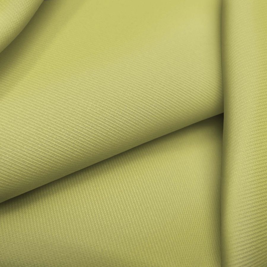 La tela base es una sarga de poliéster y elastano de 220 gr/m2 de peso y 150 cm de ancho, con una delicada sensación suave y una textura delgada. El color liso impreso en esta tela es un cálido amarillo arena, con una combinación CMYK de 24 10 68 0. Este color secundario simboliza la cercanía de la tierra y representa la calidez y el confort. Combina con una amplia gama de tonos marrones, cremas y verdes oscuros para crear una sensación natural y acogedora. Es importante tener en cuenta que la tela está impresa con el color liso a una sola cara por impresión digital textil.