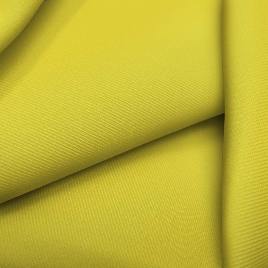 La tela base es una sarga de poliéster y elastano llamada Sarga - Prada, con un gramaje de 220 gr/m2 y un ancho de 150 cm. El color liso impreso es Amarillo Azufre, con una composición de tinta CMYK de 10 6 84 0. Este tono representa la energía y el optimismo, transmitiendo una sensación de luz y alegría. Además, el color Amarillo Azufre combina perfectamente con colores como el gris, el negro y el blanco.