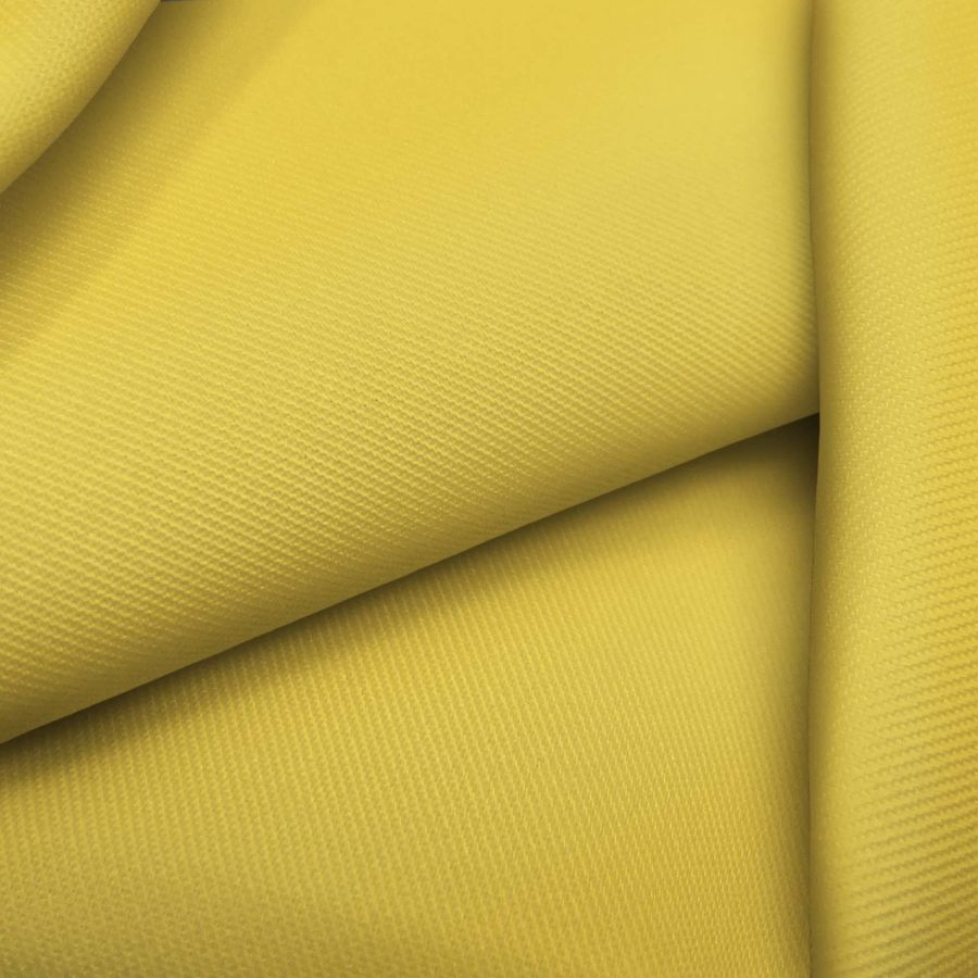 La tela base de este tejido es una sarga de poliéster y elastano con un gramaje de 220 gr/m2 y un ancho de 150 cm. El color liso impreso es amarillo alarma con una combinación de CMYK de 0 16 77 0. Este color simboliza la alegría y energía, es muy llamativo y complementa bien con tonos oscuros como el negro y azul marino, y tonos más claros como el blanco y gris.