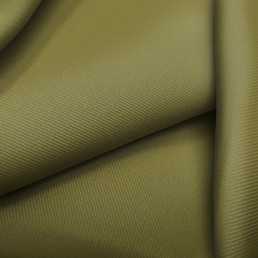 La tela base de este tejido es la sarga Prada, una sarga compuesta por 96% poliéster y 4% elastano, con un gramaje de 220 gr/m2 y un ancho de 150 cm. El color liso impreso es un verde oliva oscuro con un CMYK de 52 42 86 35. Este color transmite una sensación de tranquilidad, armonía y frescura, representando la naturaleza y la vitalidad. Combina perfectamente con tonalidades neutras y tierra, así como con tonos más intensos como el naranja o el morado.