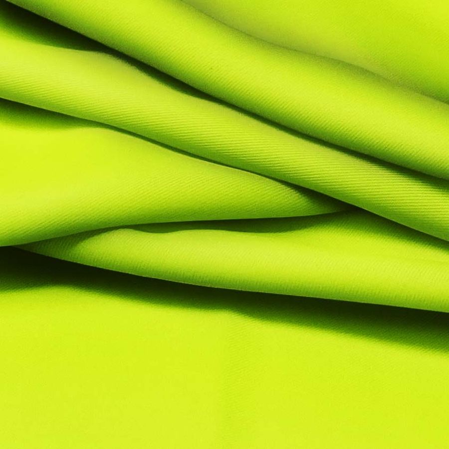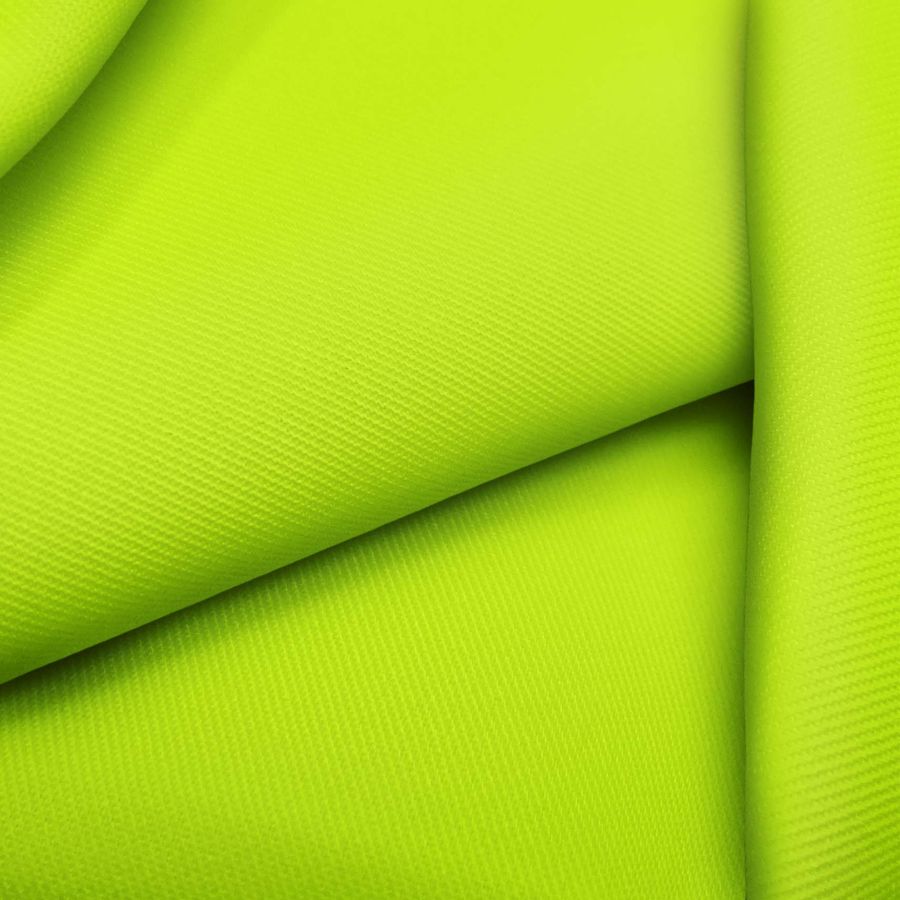 La tela base de este tejido se llama Sarga - Prada, su composición es de 96% de poliéster y 4% de elastano, con un gramaje de 220 gr/m2 y un ancho de 150 cm. El color liso impreso en la tela es verde pistacho con un CMYK de 35 0 100 0, lo que indica que se compone de la mezcla de las tintas cian, amarillo y negro. Este color es fresco y vibrante, evocando sensaciones de alegría y vitalidad. Se combina muy bien con tonos blancos, beige y grises claros, y también con otros tonos verdes más oscuros.