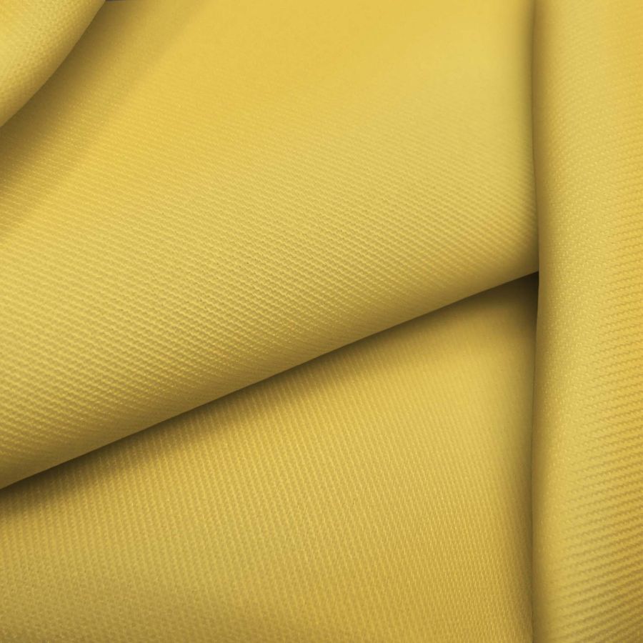 La tela base Sarga - Prada, compuesta por 96% poliéster y 4% elastano, tiene un gramaje de 220 gr/m2 y un ancho de 150 cm. El color liso impreso es un radiante amarillo llama, obtenido mediante la tecnología de sublimación con un CMYK de 0 21 74 0. Este color simboliza la alegría, la calidez y la energía, y su tono llama transmite pasión y vitalidad. Su combinación con tonalidades neutras, como el blanco, el beige o el gris, dan como resultado una mezcla equilibrada y armónica.