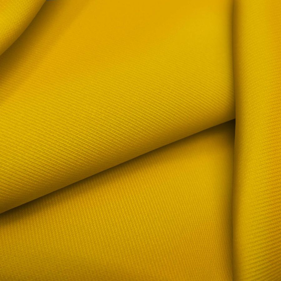 La tela base es una sarga con una composición de 96% poliéster y 4% elastano, con un gramaje de 220 gr/m2 y un ancho de 150 cm. El color liso impreso es de un vibrante amarillo melón, con un contenido de tinta Cyan de 2, tinta Magenta de 38, tinta Yellow de 96 y tinta Black de 0, lo que se traduce en la composición CMYK de 2 38 96 0. Este color secundario tiene un tono vivo y fresco, que simboliza la energía y la vitalidad de la naturaleza. En cuanto a la combinación de colores, el amarillo melón combina a la perfección con tonos como el verde agua, el naranja, el fucsia y el blanco.