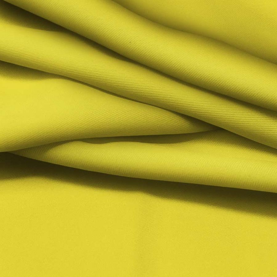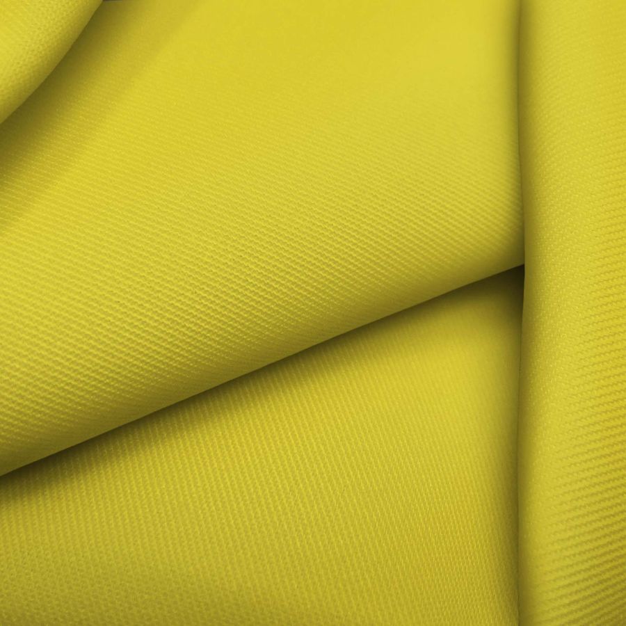 La tela base es una Sarga - Prada, compuesta por un 96% de poliéster y un 4% de elastano, con un gramaje de 220 gr/m2 y un ancho de 150 cm. El color liso impreso es amarillo membrillo, definido por los valores de CMYK 11 10 86 0. Este tono es una combinación cálida de amarillo y naranja, que simboliza la felicidad, la energía y la creatividad. Combina muy bien con otros tonos cálidos, como el rojo, el coral o el rosa.