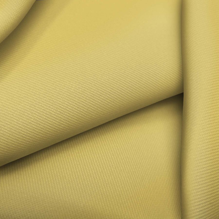 La tela base es Sarga - Prada, con composición de 96% POLIÉSTER y 4% ELASTANO. El color liso impreso es Amarillo, Nápoles. Su CMYK es 10 18 67 1 y el color secundario se describe como un tono amarillento con matices terrosos. Se combina perfectamente con tonos neutros, como el blanco, el marfil y el beige. Esta tela está impresa con el color liso a una sola cara por impresión digital textil.