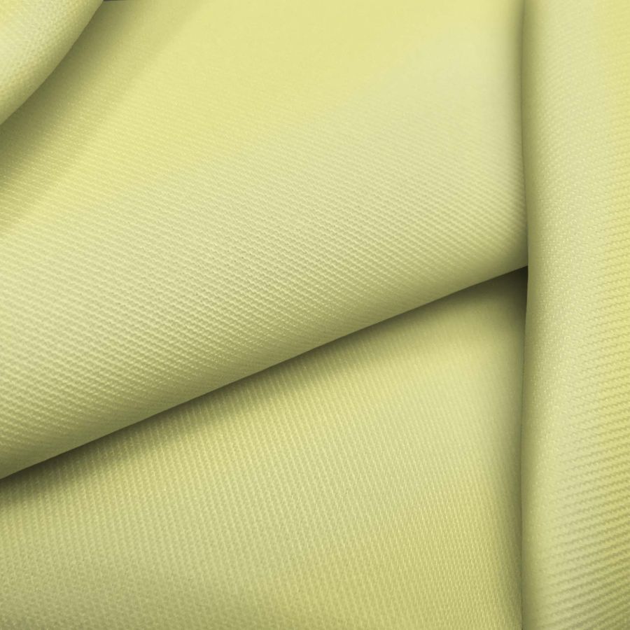 La tela base Sarga - Prada es una sarga con una composición de 96% poliéster y 4% elastano, con un gramaje de 220 gr/m2 y un ancho de 150 cm. El color liso impreso es Amarillo Pastel, cuyo contenido de CMYK es 6 0 51 0, lo que le da un tono amarillo suave. Es un color fácilmente combinable con tonos cálidos y neutros como el beige o el blanco.
