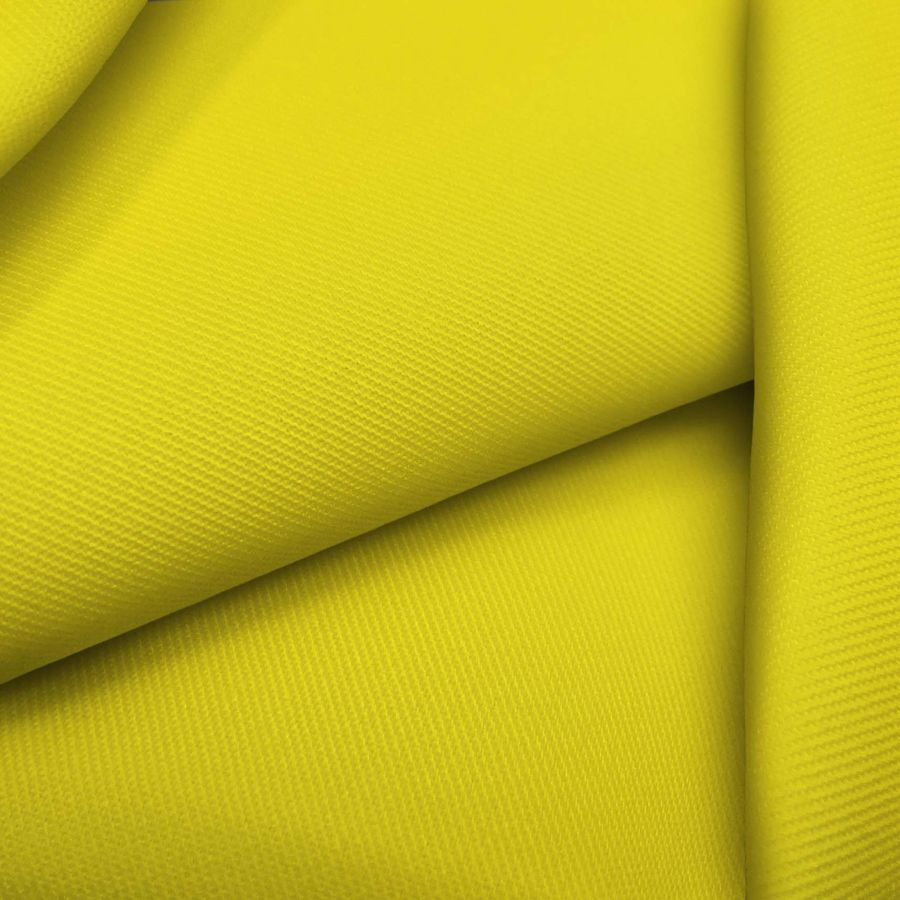 La tela base es una sarga de poliéster con un 4% de elastano, con un gramaje de 220 gr/m2 y ancho de 150 cm de color amarillo sólido impreso con una tecnología de sublimación (CMYK: 3 2 88 0). El color secundario que resalta en esta tela es el amarillo intenso, que simboliza la energía, el entusiasmo y el optimismo, combinado con tonalidades en azul, verde y naranja. Cabe destacar que la tela está impresa con una sola cara por impresión digital textil.
