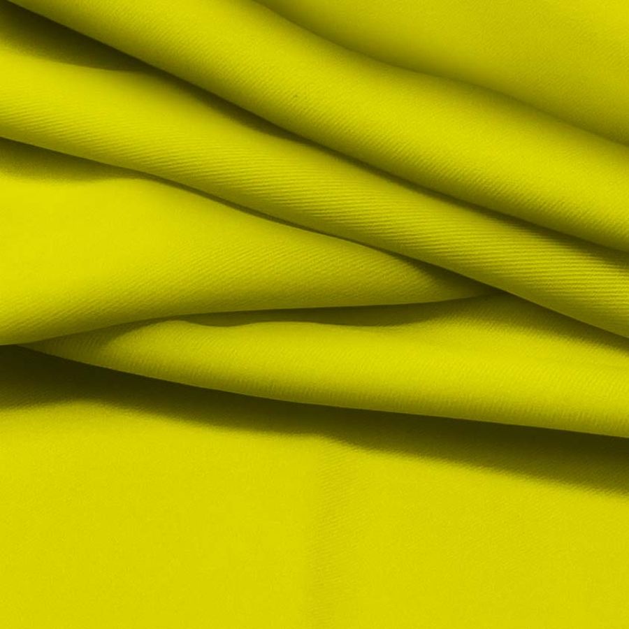 La tela base de este tejido es la Sarga - Prada de 220 gr/m2, compuesta por 96% de poliéster y 4% de elastano, con un ancho de 150 cm. Su tono liso impreso es de un amarillo verdoso con un CMYK de 20 4 96 0, lo que le otorga una tonalidad cálida y vibrante. El color secundario que se desprende de la mezcla cromática es un verde intenso que se combina bien con tonos tierra, como el ocre o el marrón, y otros tonos de verde y amarillo.