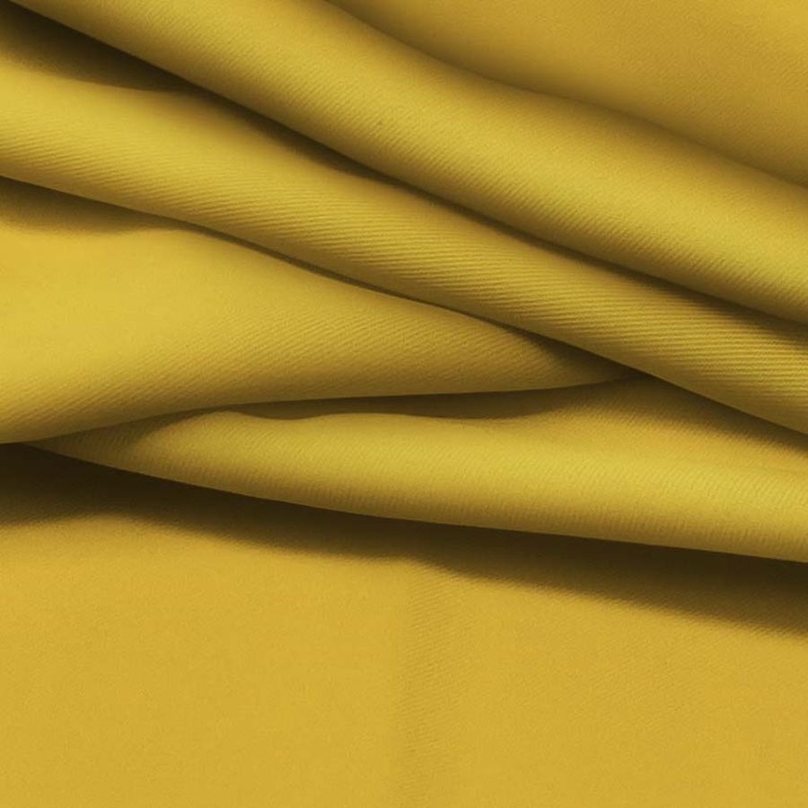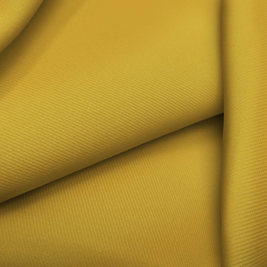 La tela base es de tipo sarga y se llama Sarga - Prada, compuesta por 96% de poliéster y 4% de elastano, con un gramaje de 220 gr/m2 y un ancho de 150 cm. El color liso impreso es de color amarillo curry, con un CMYK de 16 35 88 4. Este color se caracteriza por ser un tono cálido, con un matiz oscuro que lo hace elegante y sofisticado. Combina especialmente bien con tonos beige, marrones y dorados.