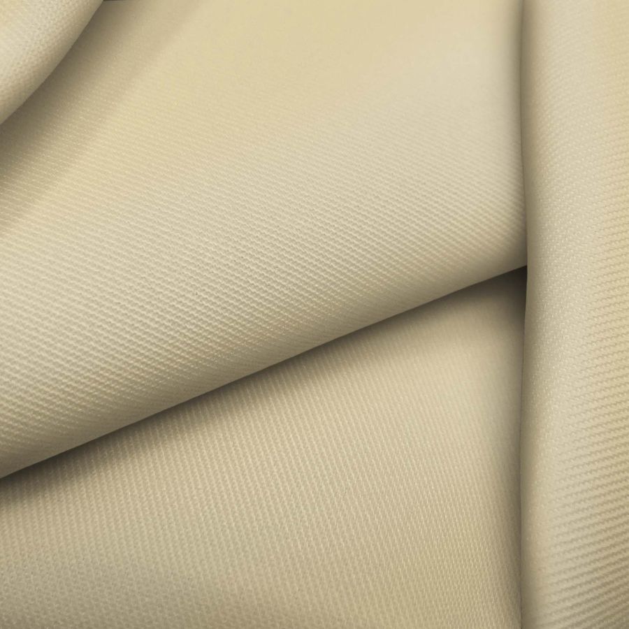 La tela base de este tejido es la sarga - Prada, compuesta por 96% de poliéster y 4% de elastano, con un gramaje de 220 gr/m2 y un ancho de 150 cm. El color liso impreso es de un amarillo ocre claro, con un CMYK de 8 13 40 0. Este color se combina especialmente bien con tonalidades similares, tonos neutros y tonos oscuros.
