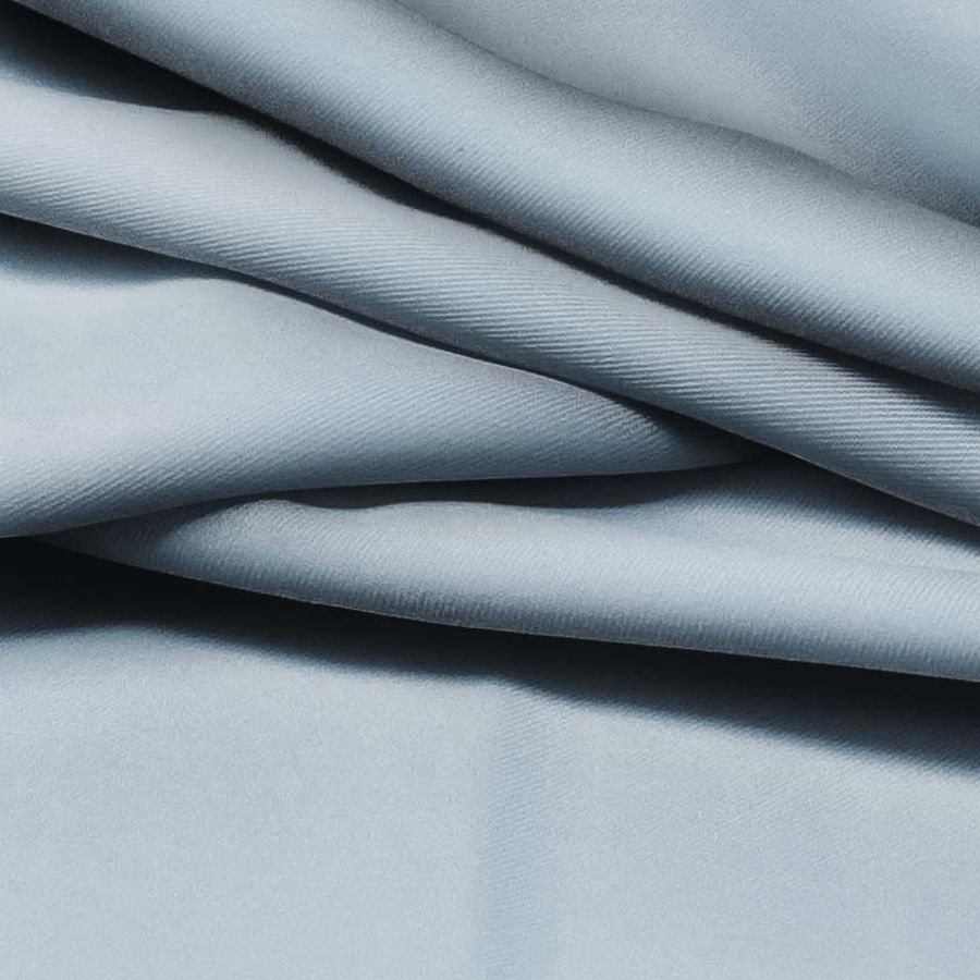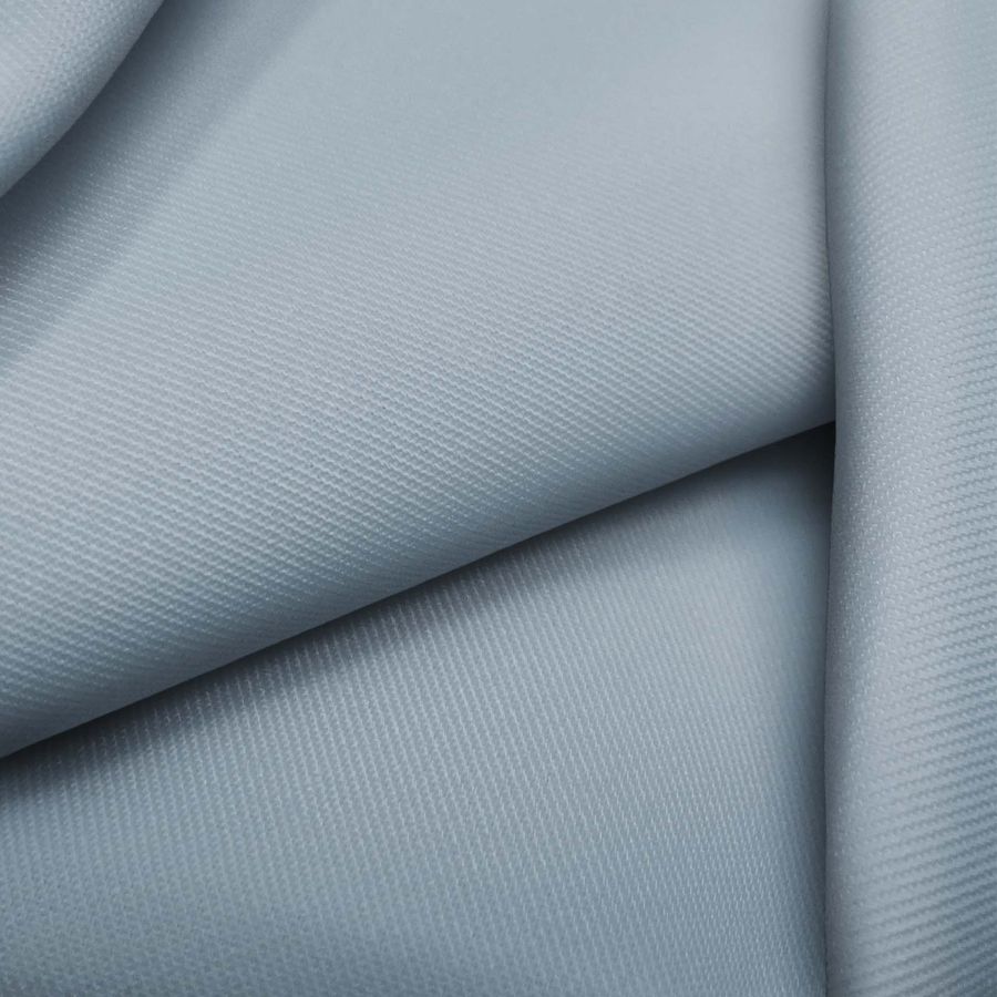 La tela base es una sarga de poliéster y elastano de 220 gr/m2 de peso y 150 cm de ancho, con un tacto suave y textura delgada. El color liso impreso es una combinación de gris y azul claro, cuyo CMYK es 47 28 24 5, destacando la presencia del cian. Este color se asocia con la estabilidad y profesionalismo, suavizado por el tono azul, y combina especialmente con tonos fríos como los azules y verdes, así como con tonos suaves como el rosa pastel.