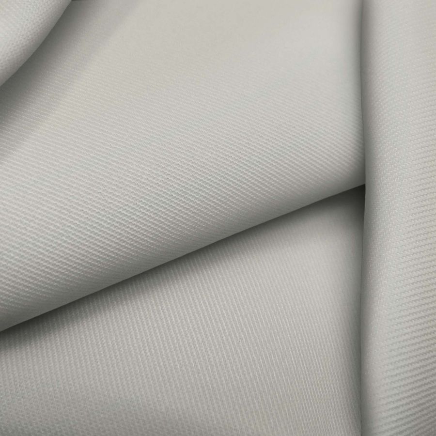 La tela base, Sarga Prada, está compuesta por un 96% de poliéster y un 4% de elastano, lo que proporciona un gramaje de 220 gr/m2 y un ancho de 150cm. El color liso impreso es de tonalidad gris pastel, con un CMYK de 22 15 24 1, que le confiere un aspecto suave y delicado. Su combinación con otros colores se puede realizar con tonalidades pastel o claros como el rosa, azul, beige o blanco. Cabe destacar que la tela base está impresa con el color liso a una sola cara mediante impresión digital textil.