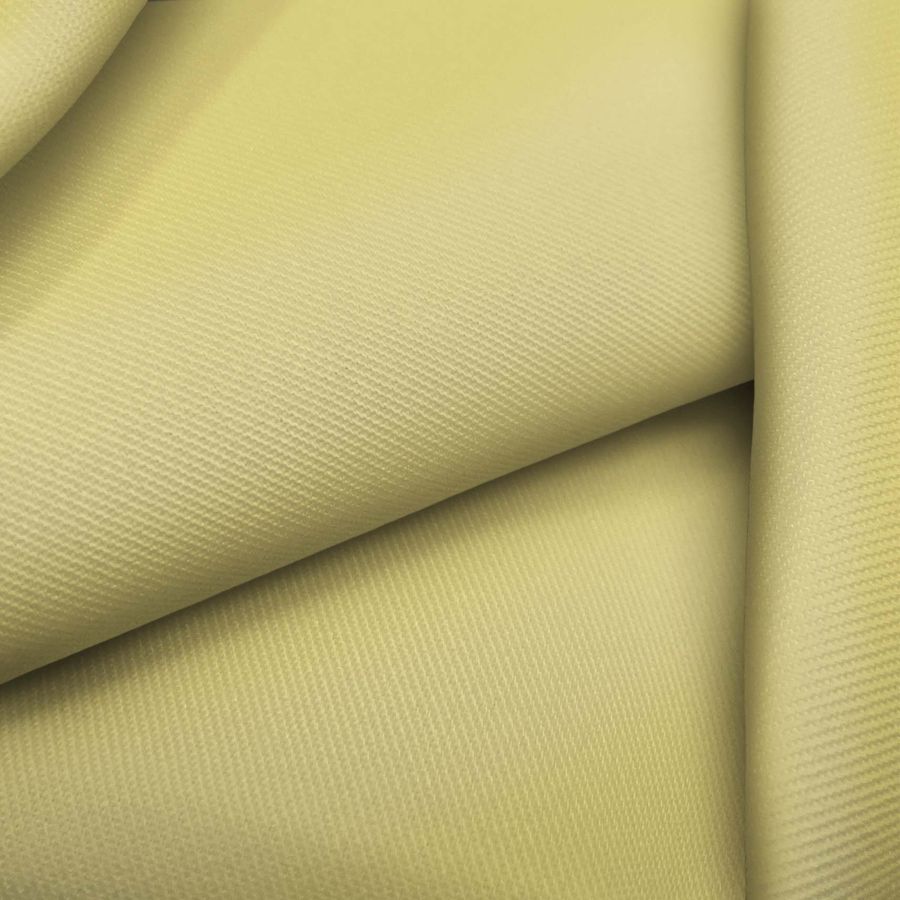 La tela base es la Sarga - Prada, compuesta por un 96% de poliéster y un 4% de elastano, con un gramaje de 220 gr/m2 y un ancho de 150 cm. El color liso impreso es amarillo-crema con un CMYK de 10 10 59 0. Un tono suave y delicado que transmite tranquilidad y calma. Combina con colores cálidos como naranja y rojo o fríos como azul y verde. Este tejido está impreso con el color liso a una sola cara mediante impresión digital textil, lo que significa que la tela no está tintada sino impresa con el color liso.