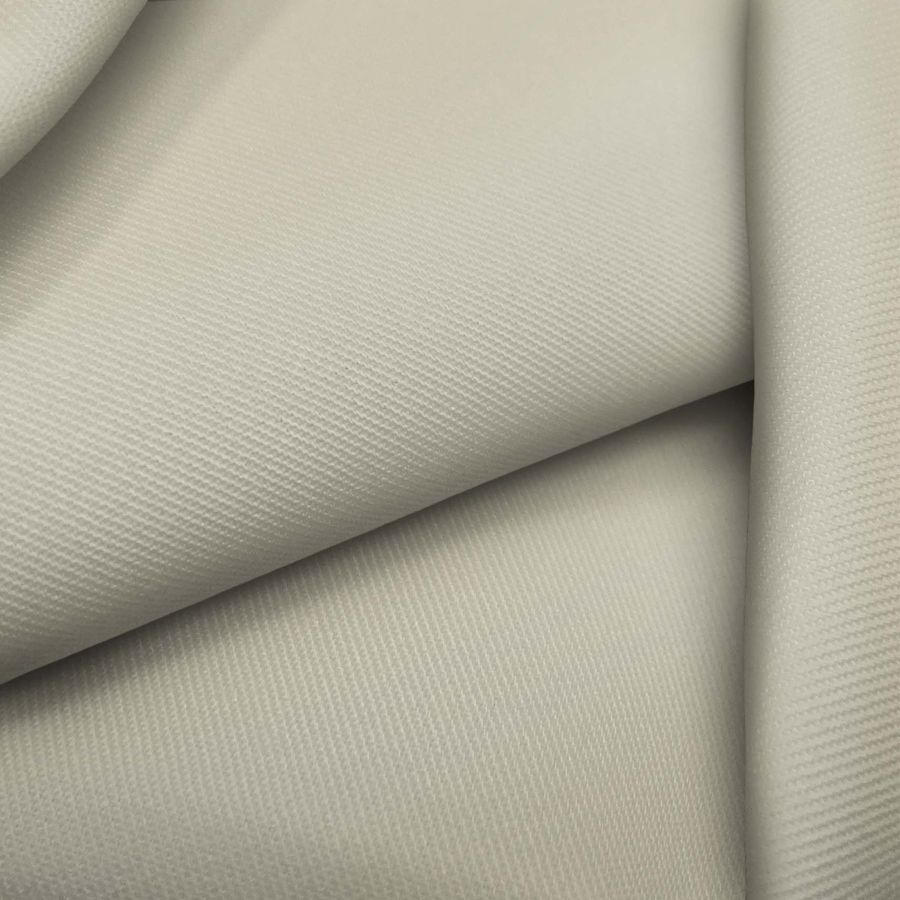 La tela base se trata de una sarga Prada con una composición de 96% poliéster y un 4% de elastano, con un gramaje de 220 gr/m² y un ancho de 150 cm. El color liso impreso es de un gris lino con una mezcla de cian, magenta, amarillo y negro en un CMYK de 19 15 31 1. Esta tonalidad representa la sutileza y serenidad, es un color neutro que funciona bien con muchos otros colores pastel. Se combina perfectamente con tonos rosas, violetas, verdes pálidos y beige, creando una armonía elegante y refinada.