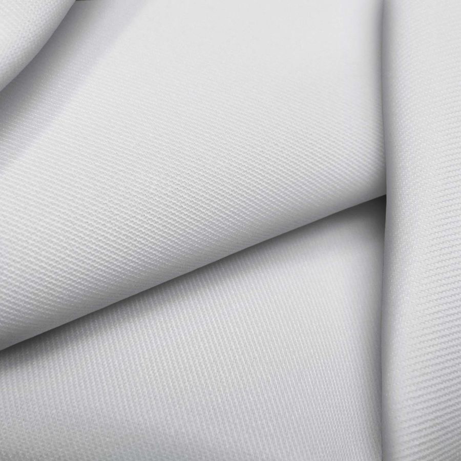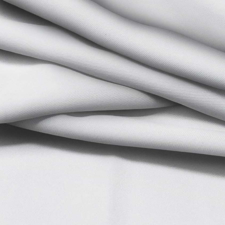 La tela base es la Sarga - Prada, compuesta por 96% de poliéster y 4% de elastano, con un gramaje de 220 gr/m2 y un ancho de 150 cm. El color liso impreso es blanco con un matiz de zinc, representado por un CMYK de 2 1 0 0. Este color transmite una sensación de sobriedad y elegancia, combinando muy bien con tonos grises y negros. La tela base está impresa con este color liso a una sola cara por impresión digital textil, lo que le aporta una gran calidad de impresión y definición de los detalles.