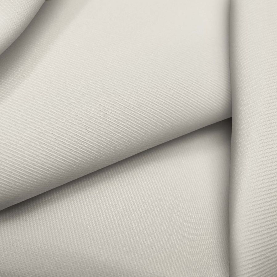 La tela base de este tejido es denominada Sarga - Prada, una sarga con composición de un 96% de poliéster y un 4% de elastano. Con un gramaje de 220 gr/m2 y su ancho de 150 cm, es ideal para la creación de ropa de moda como camisas, faldas, blusas y vestidos, así como para accesorios como pañuelos. El color liso impreso en este tejido es una mezcla de blanco y old lace con una tinta cian de 1, magenta de 4, yellow de 12 y black de 0, dando como resultado una tonalidad suave y delicada con una ligera pigmentación azulada.