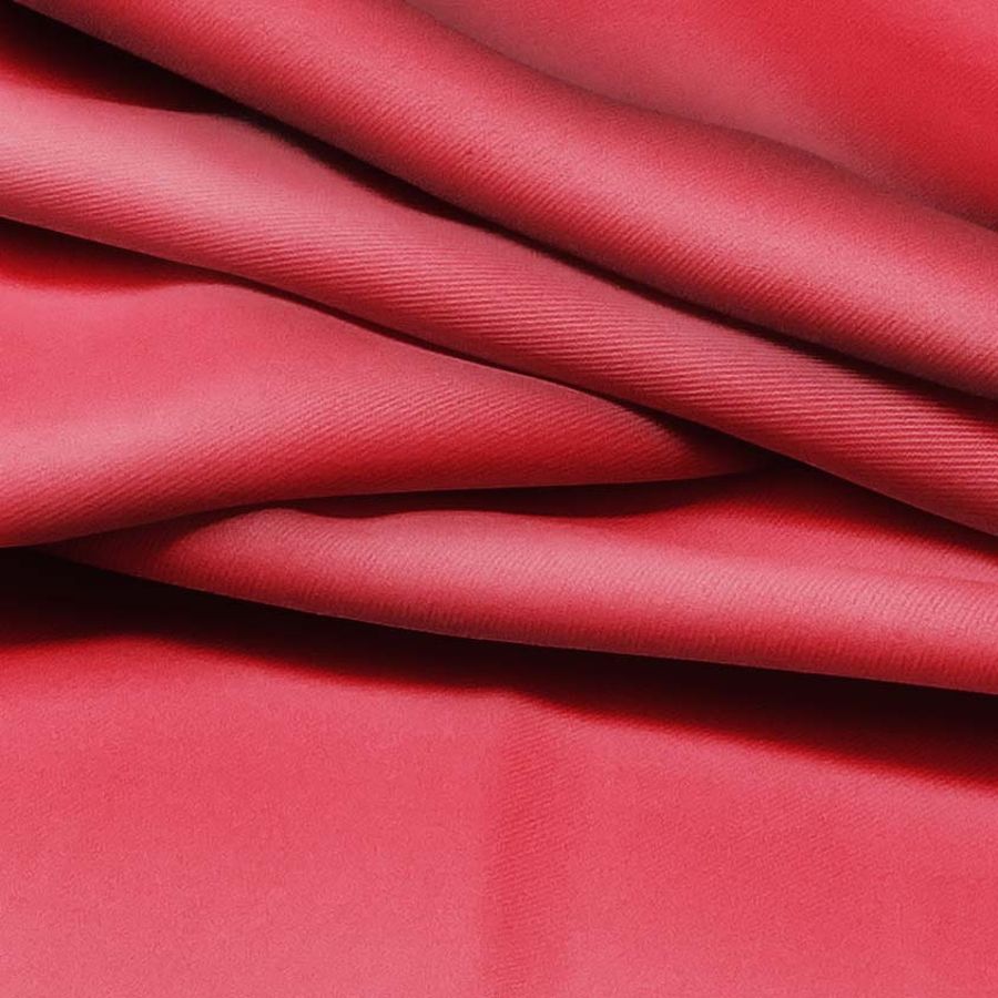 La tela base es una Sarga - Prada con un gramaje de 220 gr/m2 y una composición de 96% POLIÉSTER y 4% ELASTANO. El color liso impreso es un rojo cartamina que tiene una cantidad de tinta Cyan del 10, una cantidad de Magenta del 91, una cantidad de Yellow del 71 y una cantidad de Black del 2, que se corresponde con el CMYK 10 91 71 2. Este color secundario se caracteriza por ser un rojo intenso con un toque de rosa que lo hace más vibrante, lo que lo hace ideal para prendas de vestir con un toque de pasión, mezclándose bien con tonos tierra como el beige claro o el marrón. Es importante destacar que la tela está impresa con este color liso en una sola cara mediante impresión digital textil.