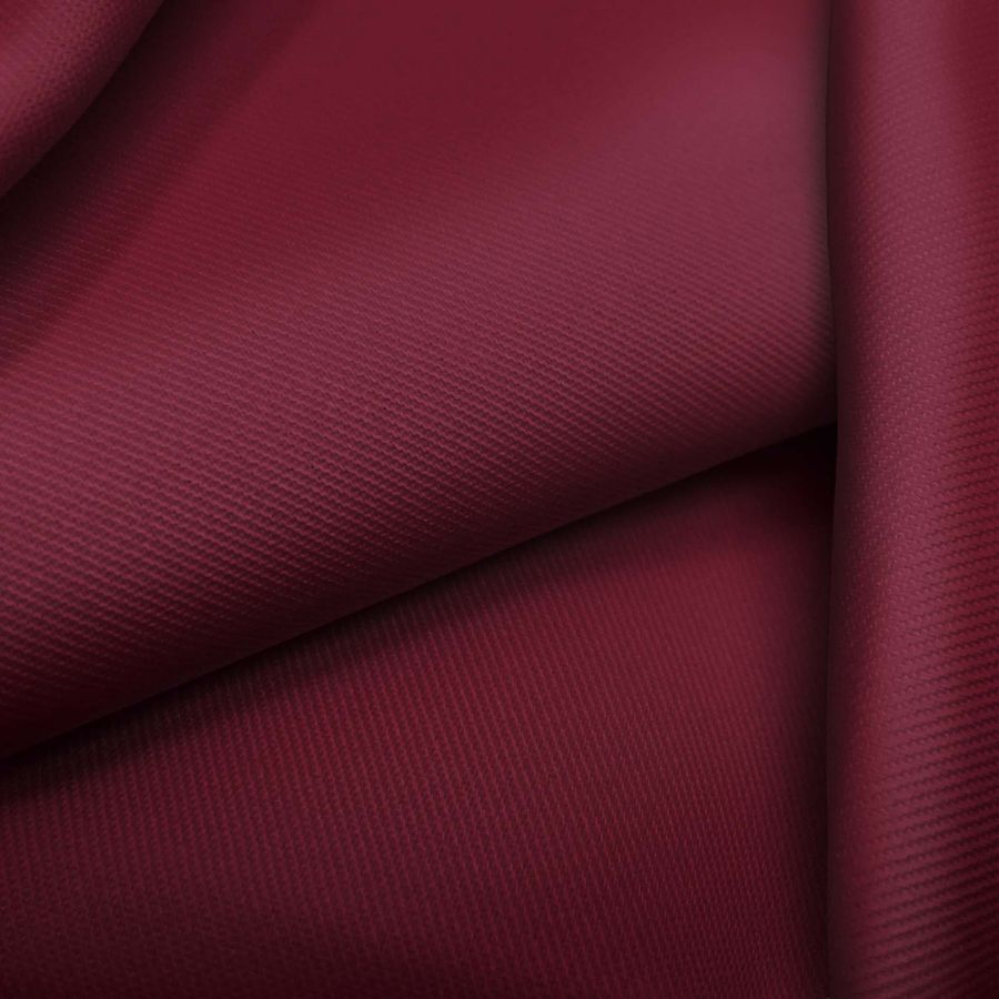 La tela base de este tejido es Sarga - Prada, compuesta en un 96% de poliéster y un 4% de elastano, con un gramaje de 220 gr/m2 y un ancho de 150 cm. El color liso impreso en la tela es Rojo Escarlata Oscuro, con un CMYK de 40 100 65 64, lo que indica una alta cantidad de magenta y un bajo porcentaje de cian, amarillo y negro. Este color representa la pasión y el poder, y combina especialmente bien con tonos más oscuros y fríos, como el gris y el negro.