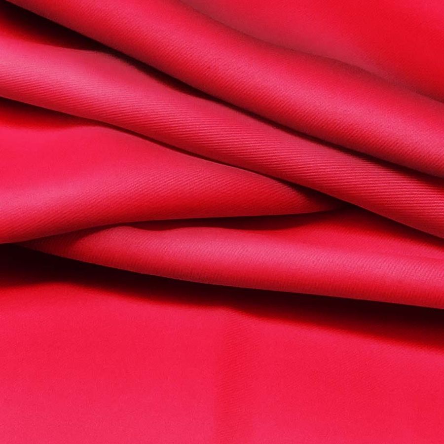 La tela base de este tejido es la Sarga - Prada, compuesta por un 96% de poliéster y un 4% de elastano. De gramaje medio, 220 gr/m2 y un ancho de 150 cm, la tela es ideal para la confección de prendas de verano como camisas, faldas, blusas, vestidos o pañuelos. La tela tiene un tacto suave y es delicada gracias a su textura delgada. El color liso impreso en la tela es un rojo rubicundo cuyos atributos son una tinta magenta del 95% y una tinta yellow del 76%. Combinando perfectamente con colores como el negro, el blanco o tonos grises, representa un color vivo y atractivo que se adapta a cualquier situación.