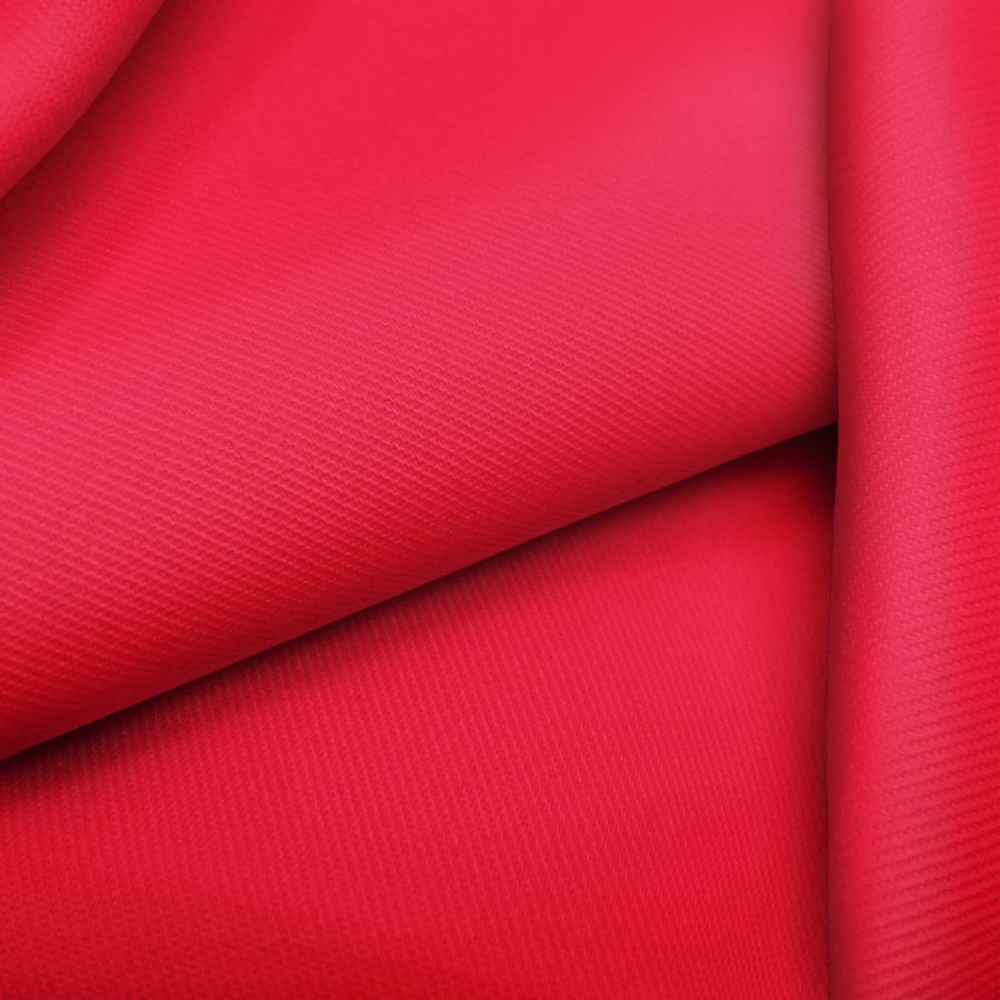 La tela base Sarga-Prada es una sarga de poliéster con un toque de elastano, que le aporta una suavidad y flexibilidad al tejido. Su color liso impreso es un rojo intenso, denominado Tractor Rojo, que está compuesto por una alta saturación de tintas magenta y yellow, siendo el resultado un rojo vivo y cálido. Este color combina muy bien con tonos tierra, beige, dorado, blanco y negro.