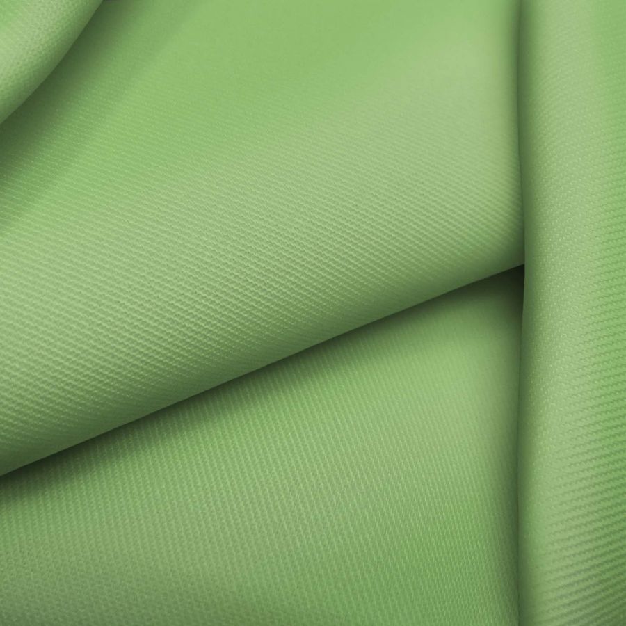 La tela base es una sarga con una composición de 96% poliéster y 4% elastano, con un gramaje de 220 gr/m2 y un ancho de 150 cm. El color liso impreso es de un verde pistacho con un CMYK de 50 0 68 0. Este color vibrante y llamativo evoca una sensación de frescura y naturaleza, combinando perfectamente con otros tonos verdes y colores neutros como el blanco o el gris.