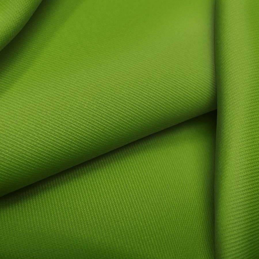 La tela base de este tejido es la Sarga-Prada, con un alto porcentaje de poliéster y elastano para proporcionar elasticidad. El color liso impreso en la tela es un verde aguacate que se consigue con una tinta cuyos valores CMYK son 70 27 100 13. Este color de verde muestra un tono suave y alegre que simboliza la armonía y la frescura. Se combina especialmente bien con tonos marfil, blanco o crudo, lo que da lugar a una unión excepcionalmente bella y elegante.