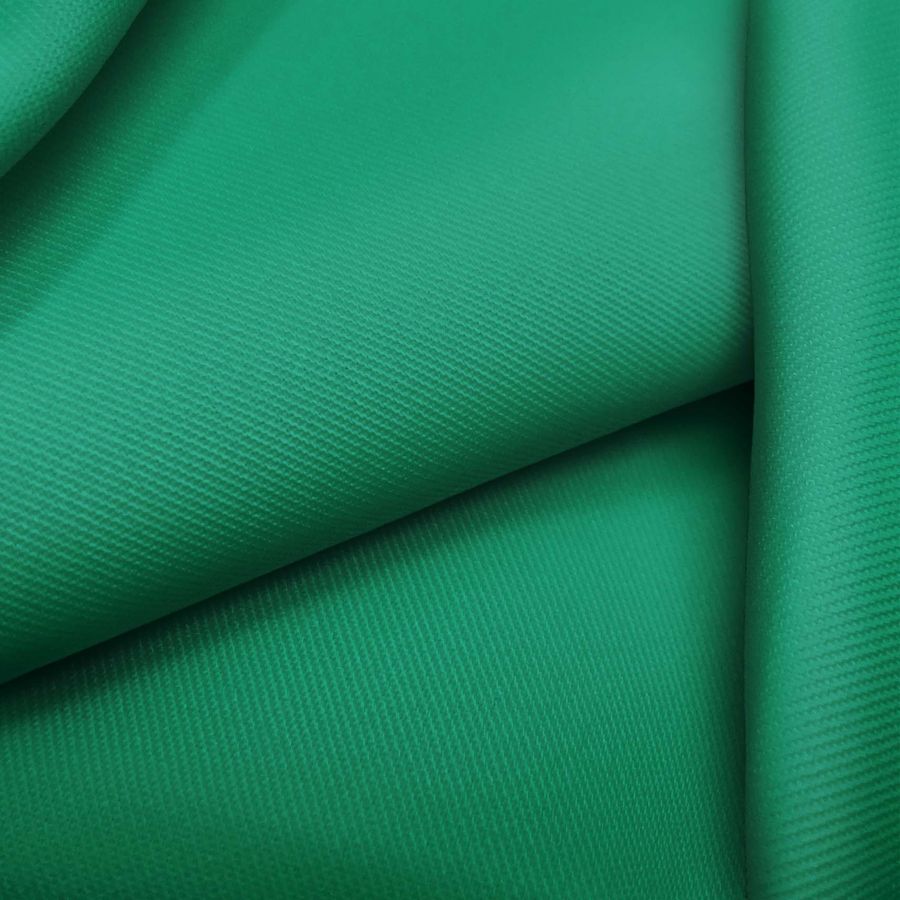 La tela base de este tejido es la sarga Prada, compuesta mayoritariamente por poliéster y elastano. El color liso impreso es un verde cobalto con una combinación CMYK de 85 23 74 7, proporcionando un brillo intenso y vivo a la prenda. Este color simboliza la naturaleza y la serenidad, combinando perfectamente con tonalidades tierra y neutras.