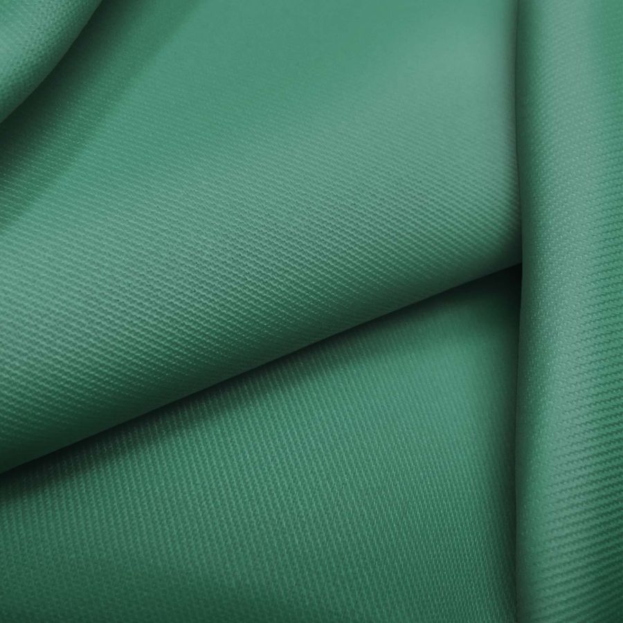 La tela base es la Sarga-Prada, compuesta por un 96% de poliéster y un 4% de elastano, con un gramaje de 220 gr/m2 y un ancho de 150 cm. El color liso impreso es de tonalidad verde Hooker, con una proporción de tinta Cyan del 77%, Magenta del 31%, Yellow del 64% y Black del 18%, reflejando un tono fresco y vibrante. El color secundario verde Hooker simboliza la naturaleza, la esperanza y el equilibrio, pudiendo ser combinado con tonos neutros como el blanco, el beige o el gris para una apariencia fresca y serena.